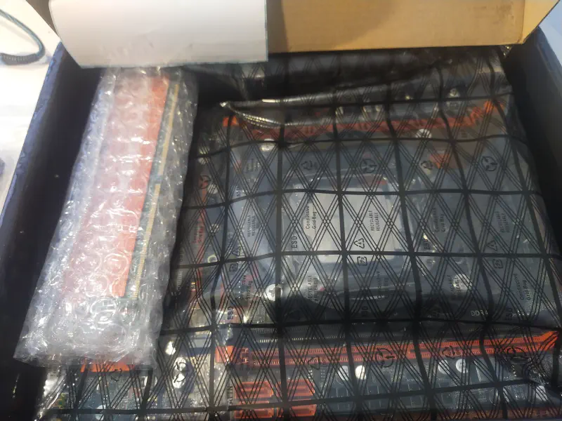 Przesyłka z Chin dotarła do mnie w około 14 dni. Pudełko po płycie głównej zawierało samą płytę główną z zamontowanym już procesorem, oraz 2 kości RAM w foli antystatycznej. W czasie kiedy jeszcze oczekiwałem na samą obudowę pozwoliłem sobie na odpalenie całości poza obudową. Składanie podzespołów komputerowych nie stanowi żadnej fascynującej przygody, zatem pozwolę sobie wrzucić kilka fotek