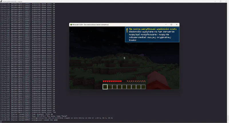 Oznacza to tyle, że nie wykryło zapoznania się z EULA oraz brakuje ustawień w pliku server.properties. Na koniec wszystkiego plik server.properties jest generowany oraz powstaje także plik eula.txt. Akceptacja postawień licencyjnych odbywa się poprzez zapoznanie się z ich treścią, które dostępne są pod linkiem znajdującym się w pliku eula.txt, a następnie zmianie wartości false na true. Drugą rzeczą jaką zrobię to przełączenie serwera w tryb offline. Odbywa się to poprzez zmianę w pliku server.properties wartości dla online-mode - tym razem na odwrot - z true na false. Po tych zmianach możemy ponownie wywołać wcześniejsze polecenie.