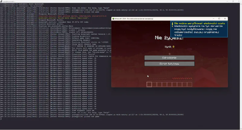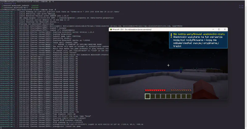 To tyle, po wystartowaniu usługi jestem w stanie podlaczyć sie do swojego nowego serwera minecraft.